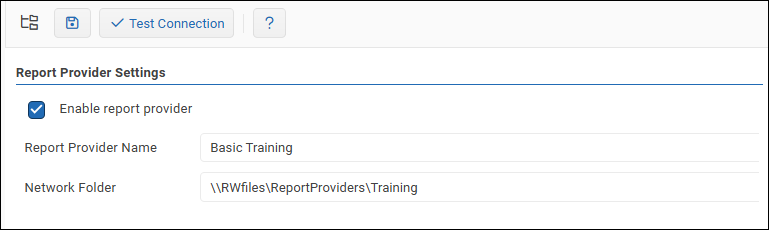 Set the Report Provider Name, specify the Network Folder path, and select Enable report provider.