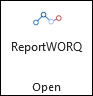 - At the top of Excel, select the ReportWORQ tab and then select the ReportWORQ open button.