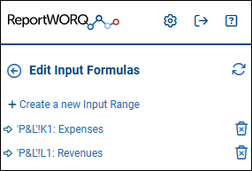 You can create new input formulas or review and modify existing ones. When you select View and Create Input Ranges, the Edit Input Formulas area appears.