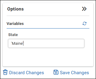 - In the Variables area of the Options pane: