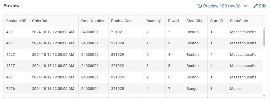 - When you are finished previewing data, select Edit to return to the previous view.