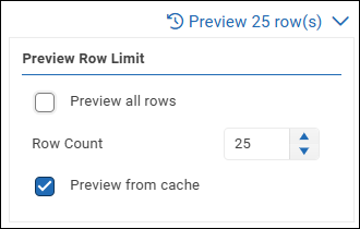 When you preview data, you can control the number of rows displayed and whether the data is queried from the datasource or retrieved from cache.