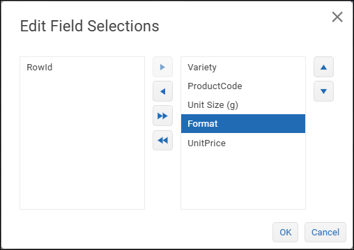 - Single arrow buttons move the selected field only.