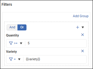 - And — Data must satisfy all filter expressions in the group.