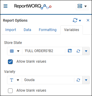Note: All variables must be assigned values in order to run the report or refresh the report.