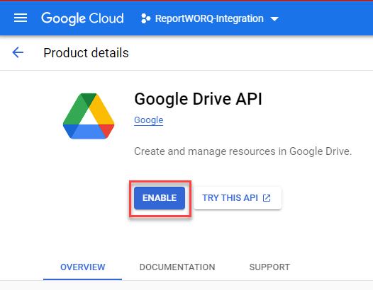The following steps must be performed to enable ReportWORQ to integrate with Google Drive: