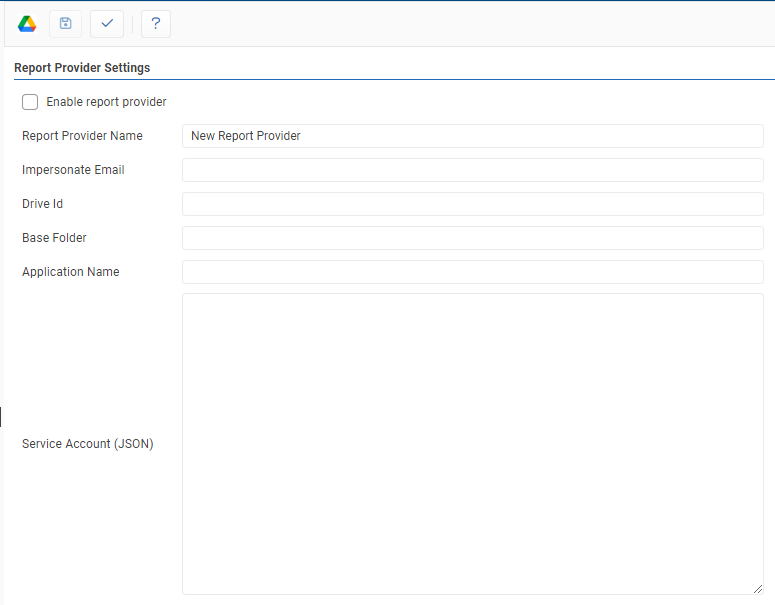 - The Google Drive Report Provider can be enabled or disabled by clicking the checkbox.