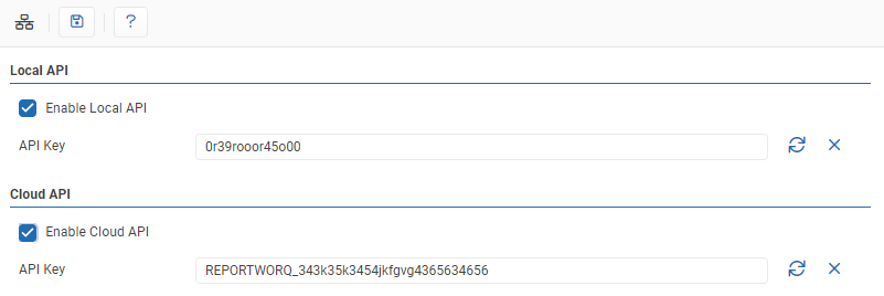 - Cloud API: This is a token that is unique to your ReportWORQ Server instance, and should only be shared with developers who build any automated processes or applications using the ReportWORQ Cloud Connector & ReportWORQ API. The token is required for every call made to the ReportWORQ Cloud Connector. You may manually set this token value, for instance when upgrading from an earlier release or migrating to a new server where you need to continue using the same token in existing automation processes.
