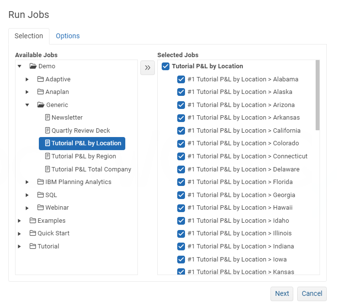 ReportWORQ supports several methods to run jobs from external processes via a REST API interface, such as Automation Systems, Windows Task Scheduler, Planning Analytics TI Processes, and Chores as well as a built-in scheduler. When executing a ReportWORQ Job from an external process the user will provide a list of Jobs to execute, an optional list of email addresses for notification purposes, and optional override parameters to pass along to the job. Details on calling the ReportWORQ API are documented in the Admin Guide. In addition to the REST API interface, ReportWORQ has a native integration with IBM Planning Analytics on-premise and cloud servers to execute jobs from a Turbo Integrator Process.