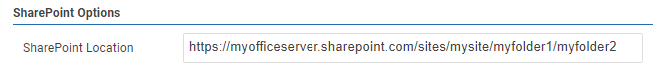 The ability to distribute files to SharePoint from ReportWORQ is achieved through the use of stored SharePoint login credentials. The user name (version dependent) and password are the credentials required to authenticate to the SharePoint server to post files to SharePoint libraries. When job distribution is configured, specify the path to the SharePoint Library where reports should be distributed. The login credentials specified here must have permission to create/delete/update files in the SharePoint libraries where ReportWORQ should distribute files. SharePoint credentials are automatically encrypted by ReportWORQ.