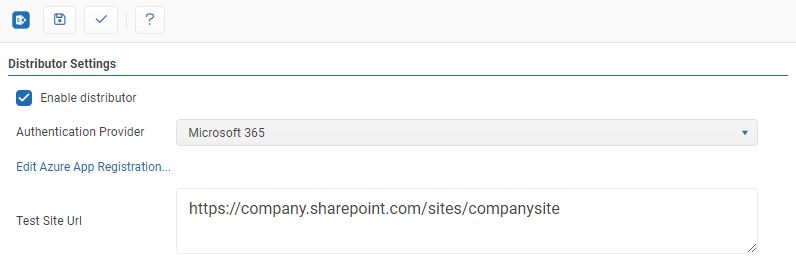 - The SharePoint Distributor can be enabled or disabled by clicking the checkbox.